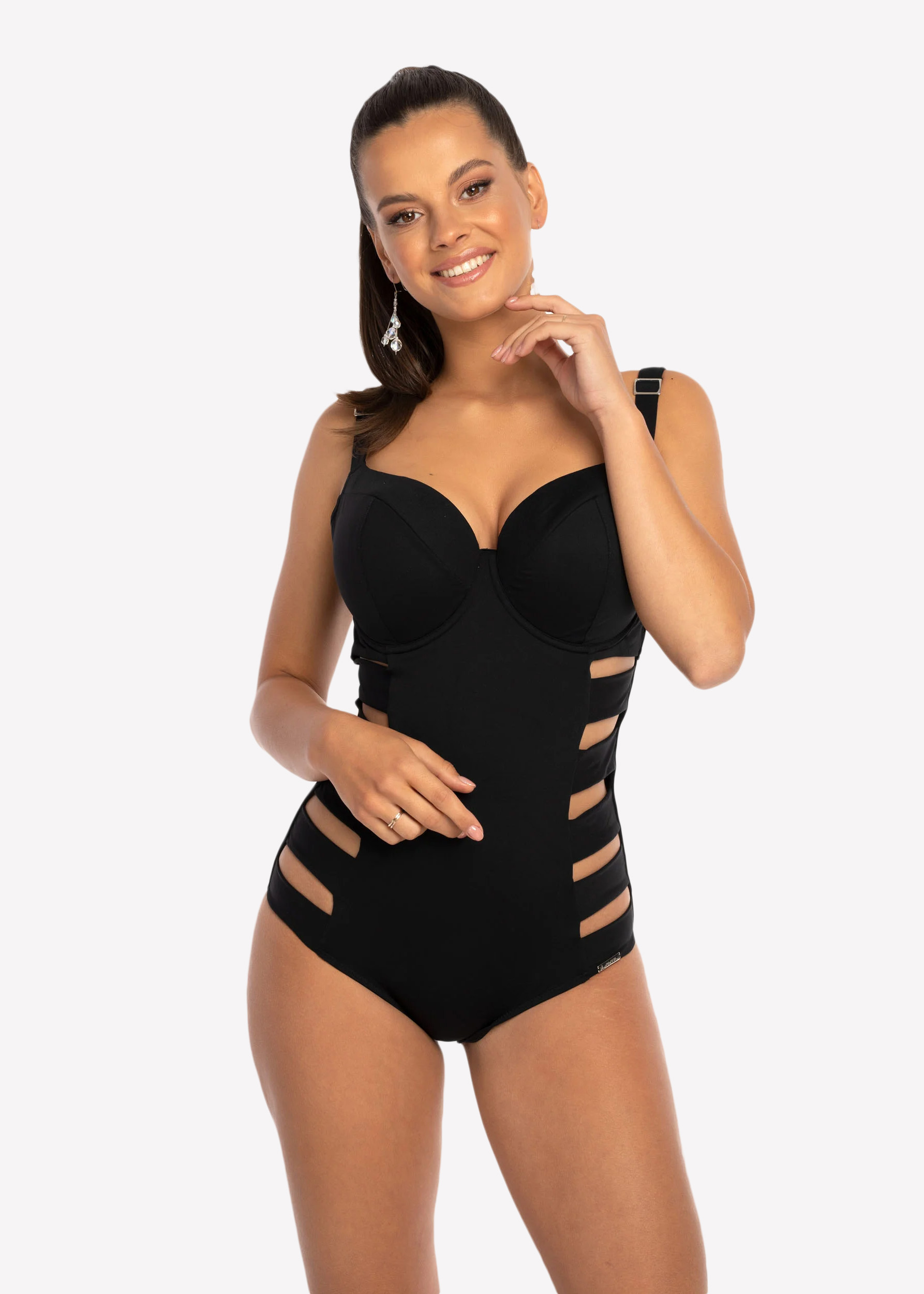Ten model został stworzony z myślą o kobietach, które potrzebują prawdziwego podtrzymania biustu, także w większych rozmiarach. Miękka miseczka piankowa pięknie otula piersi i jest szczególnie ceniona przez Panie z dużym biustem za komfort noszenia oraz naturalny efekt modelowania. Stabilizujące fiszbiny zostały ukryte w miękkiej kieszonce, dzięki czemu wzmacniają konstrukcję stroju bez nieprzyjemnego ucisku. To właśnie ten typ dopracowanych detali sprawia, że kostium nie tylko dobrze wygląda, ale też naprawdę dobrze się nosi.