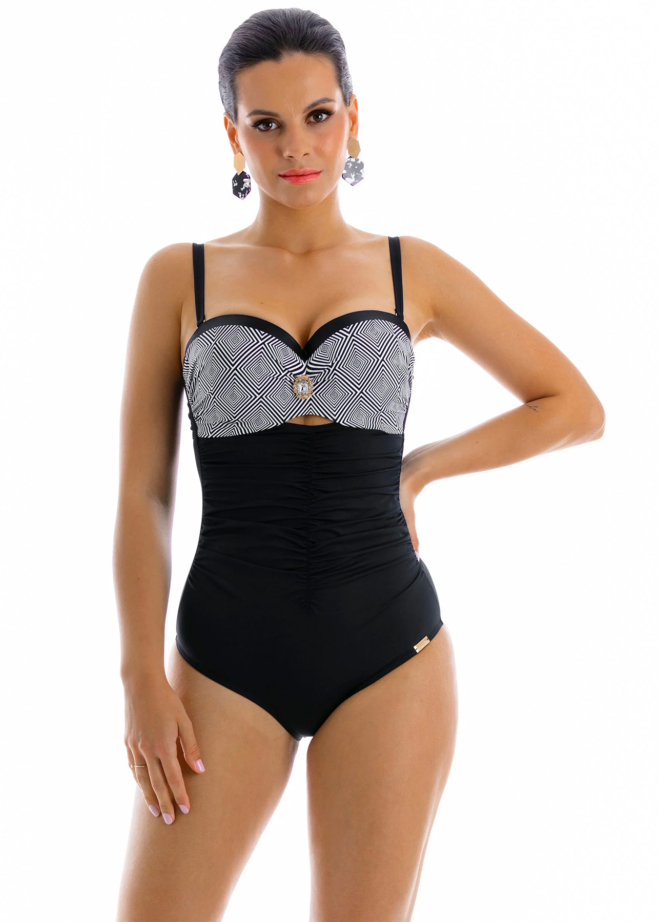 Każda linia, każde marszczenie z przodu tego kostiumu zostało zaprojektowane z myślą o modelowaniu Twojej sylwetki, abyś mogła czuć się pewna siebie i wyjątkowa. Regulowane ramiączka i stabilizujące fiszbiny w miękkiej kieszonce są jak niewidzialni strażnicy, którzy dbają o Twoje komfortowe samopoczucie przez cały słoneczny dzień.
