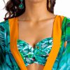 Egzotyczny print inspirowany motywem pawiego pióra został wzbogacony subtelnymi kryształowymi aplikacjami, które pięknie połyskują w słońcu. Turkusowo-zielona kolorystyka z złotymi akcentami doskonale komponuje się z letnią opalenizną. Wysokogatunkowy materiał z delikatnym połyskiem gwarantuje trwałość i ekskluzywny wygląd.
