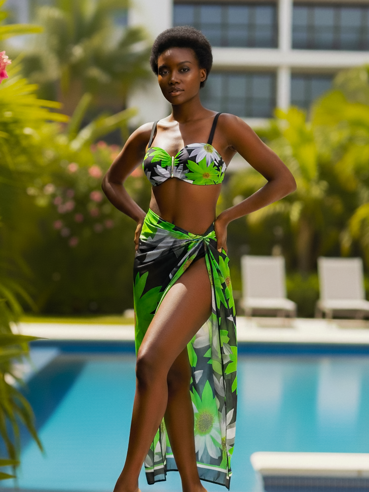 Biustonosz kąpielowy push-up w wiosenne kwiaty