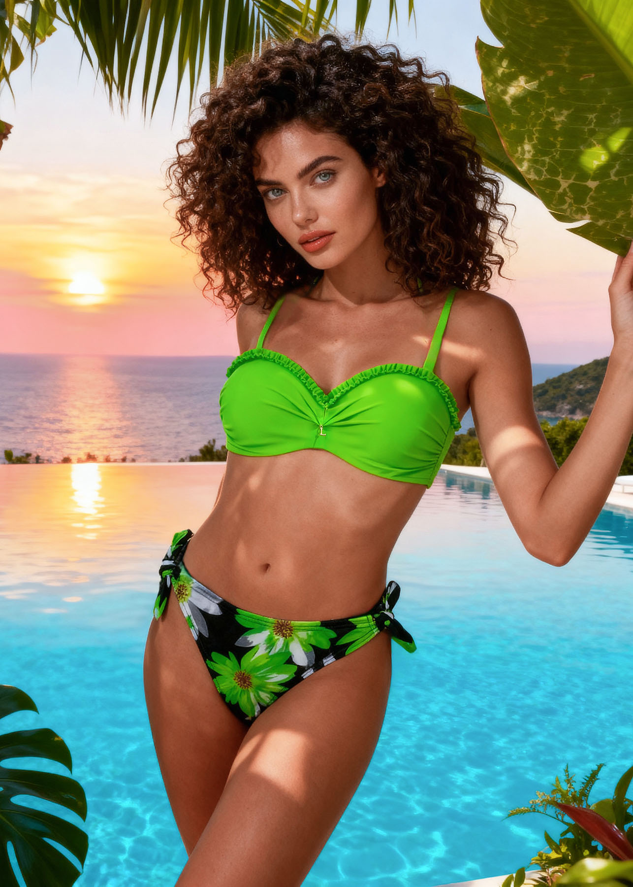 Zanurz się w ekscytującym latem z dwuczęściowym kostiumem kąpielowym Brigitt v.MW N21, który skradnie serca miłośniczek słońca i wody. Autorska konstrukcja Lavel w stylu bardotki łączy w sobie klasyczną elegancję z najnowszymi trendami w modzie plażowej, gwarantując wygląd, który nie pozostanie niezauważony.