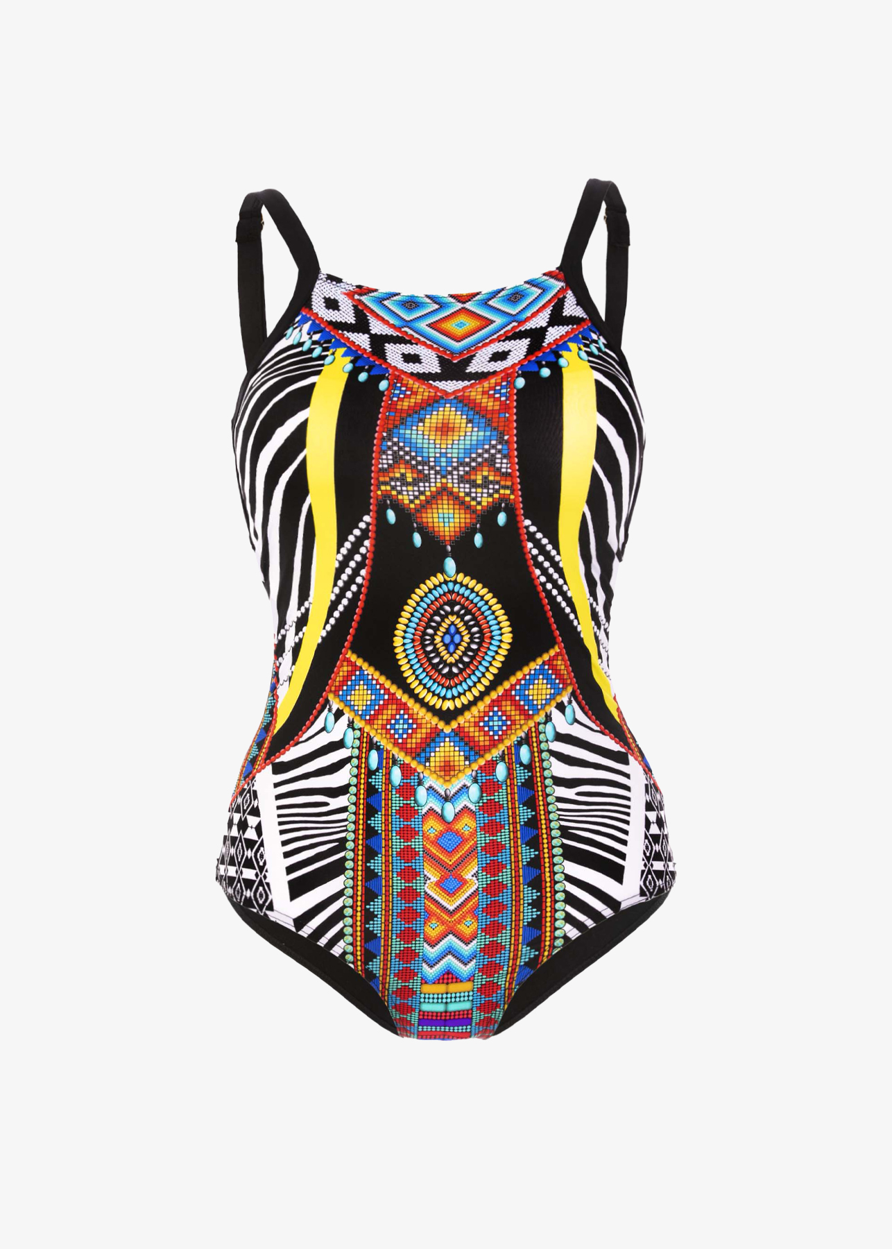 Eva D jest strojem zapewniający pełen komfort w każdej sytuacji. Jego jedwabiście miękki materiał otula przyjemnie ciało, delikatna tkanina przylega do każdego centymetra skóry, tworząc drugą skórę w piękny print aztecki. Kuszące wycięcia delikatnie uwydatniają biodra każdej kobiety. Eva D jest uosobieniem silnej i niezależnej kobiety. Uniwersalny fason stroju zatuszuje drobne niedoskonałości figury, jednocześnie podkreślając linie biustu, poprzez wbudowany biustonosz z wyjmowanymi wkładkami push-up. Idealnie wykrojony w linii bioder, sprawia, że Twoje pośladki będą wyglądały zniewalająco.