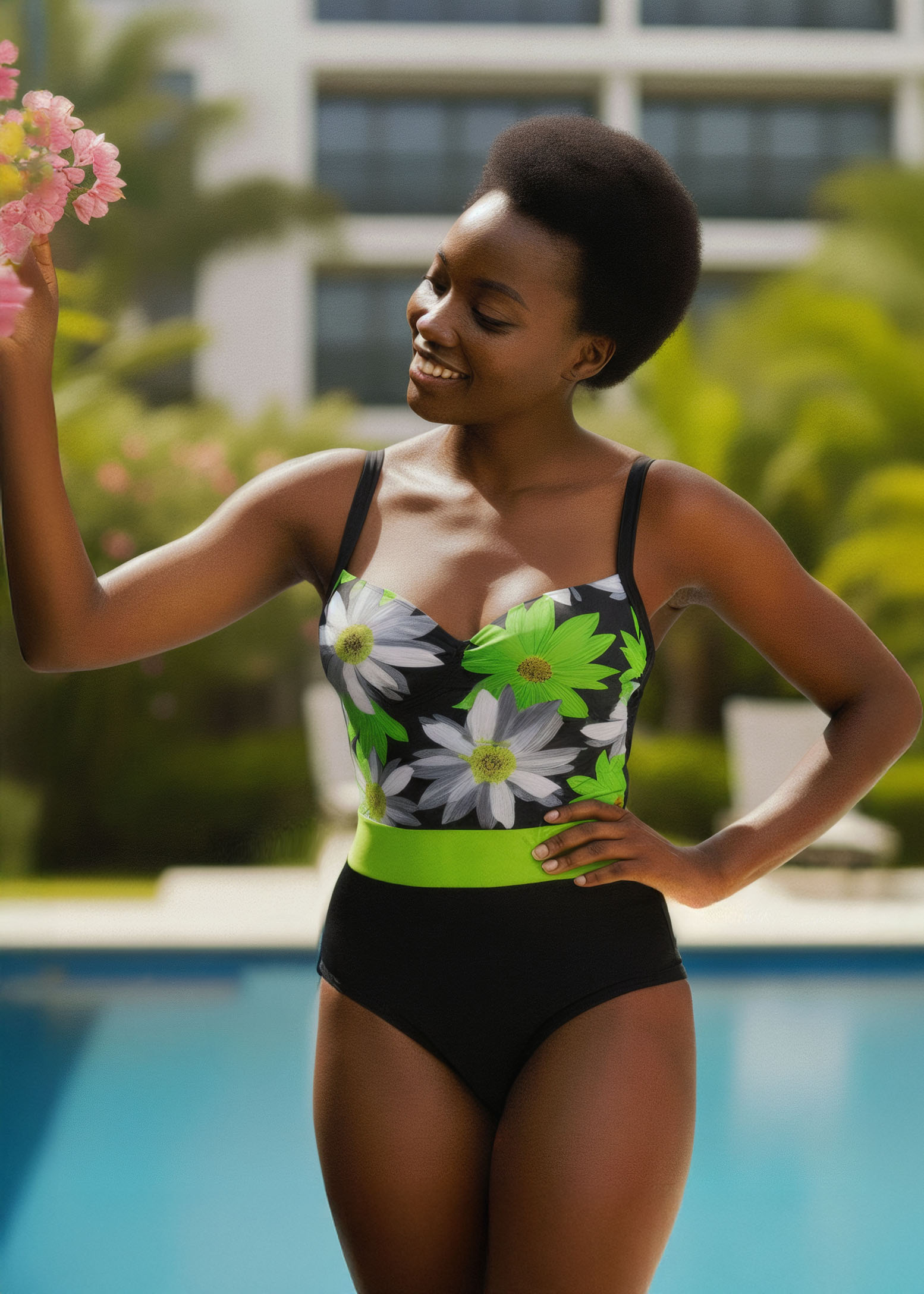 Podaruj sobie odrobinę wiosennej magii w każdym ruchu dzięki kostiumowi kąpielowemu Kaja N21. Ten elegancki, jednoczęściowy strój kąpielowy jest jak sonet świętujący kobiecość, z wiosennymi kwiatami rozkwitającymi na tle ponadczasowej czerni. Jego modelujący krój doskonale współgra z naturalnymi kształtami figury typu klepsydra, gruszka czy rożek, podkreślając zalety i maskując ewentualne niedoskonałości.
