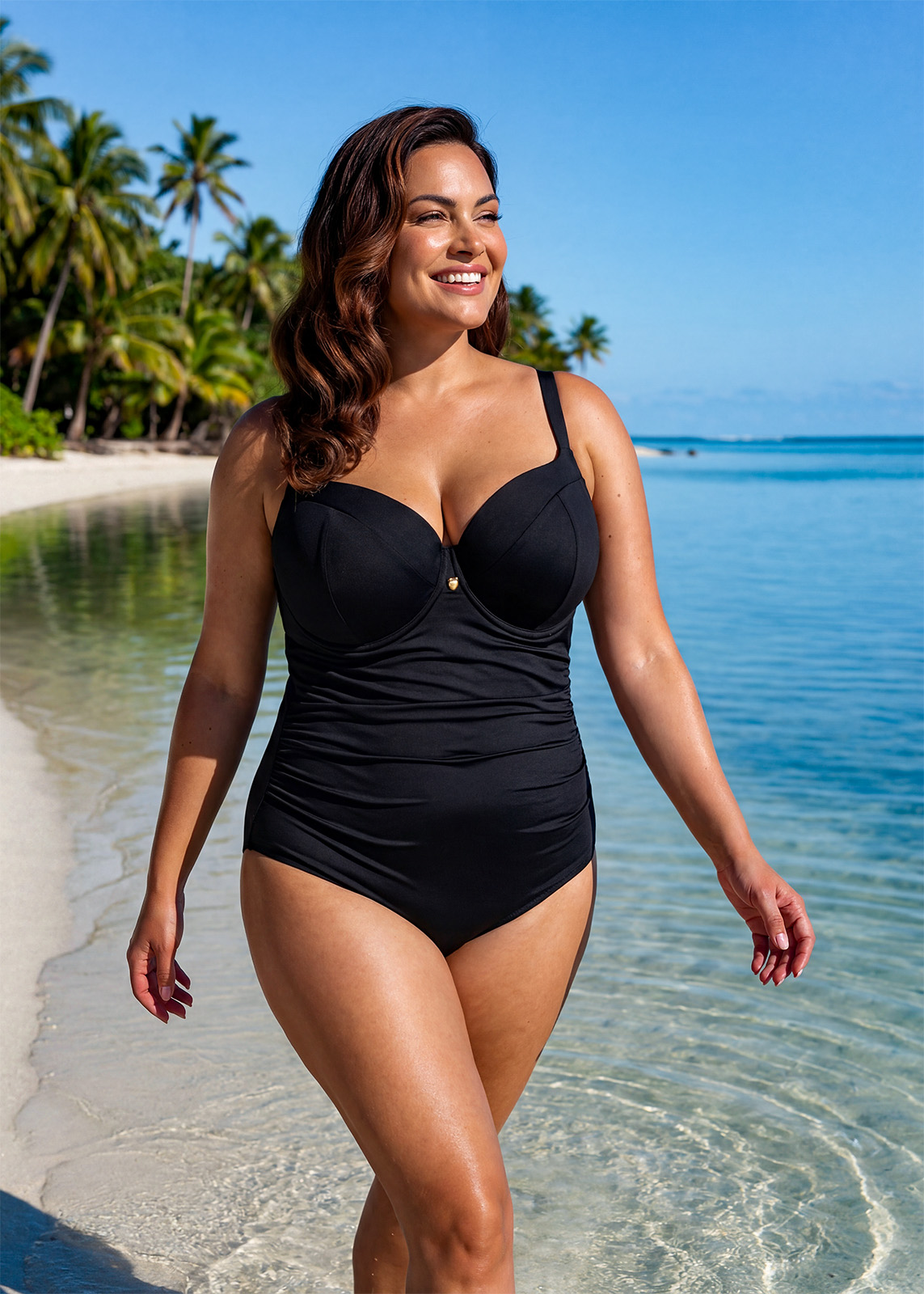 Czarny, elegancki i uwodzicielski – tak w trzech słowach można opisać jednoczęściowy kostium kąpielowy Leila. Jest to idealny strój dla kobiet, które cenią sobie klasykę i komfort, a przy tym chcą wyglądać stylowo nad wodą. Ciemny kolor tego kostiumu sprawia, że będzie on idealny dla każdej kobiety, niezależnie od karnacji. Ponadczasowy design i uniwersalny styl sprawiają, że kostium Leila nigdy nie wyjdzie z mody.