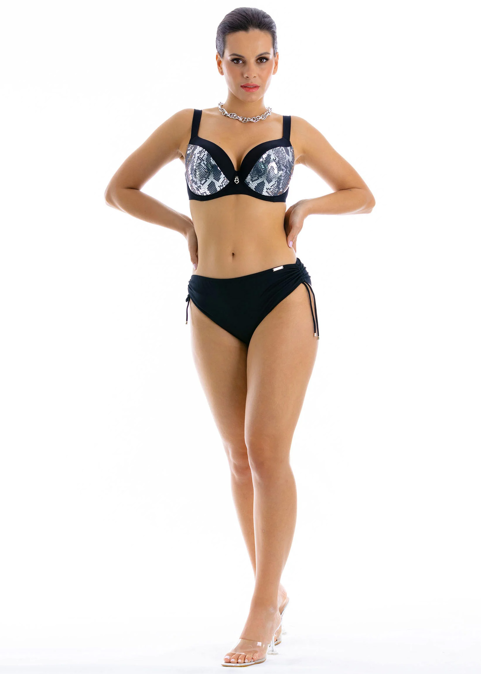 Biustonosz kąpielowy z miękką miseczką piankową Loren Cup to wybór, który łączy elegancję z funkcjonalnością. Przygotowany specjalnie z myślą o potrzebach puszystych i Pań z dużym biustem, ten model gwarantuje doskonałe wsparcie bez kompromisów w zakresie wyglądu. Ponadczasowy czarny kolor, uzupełniony o srebrne detale, czyni ten biustonosz kąpielowy wyjątkowym dodatkiem do letniej garderoby.