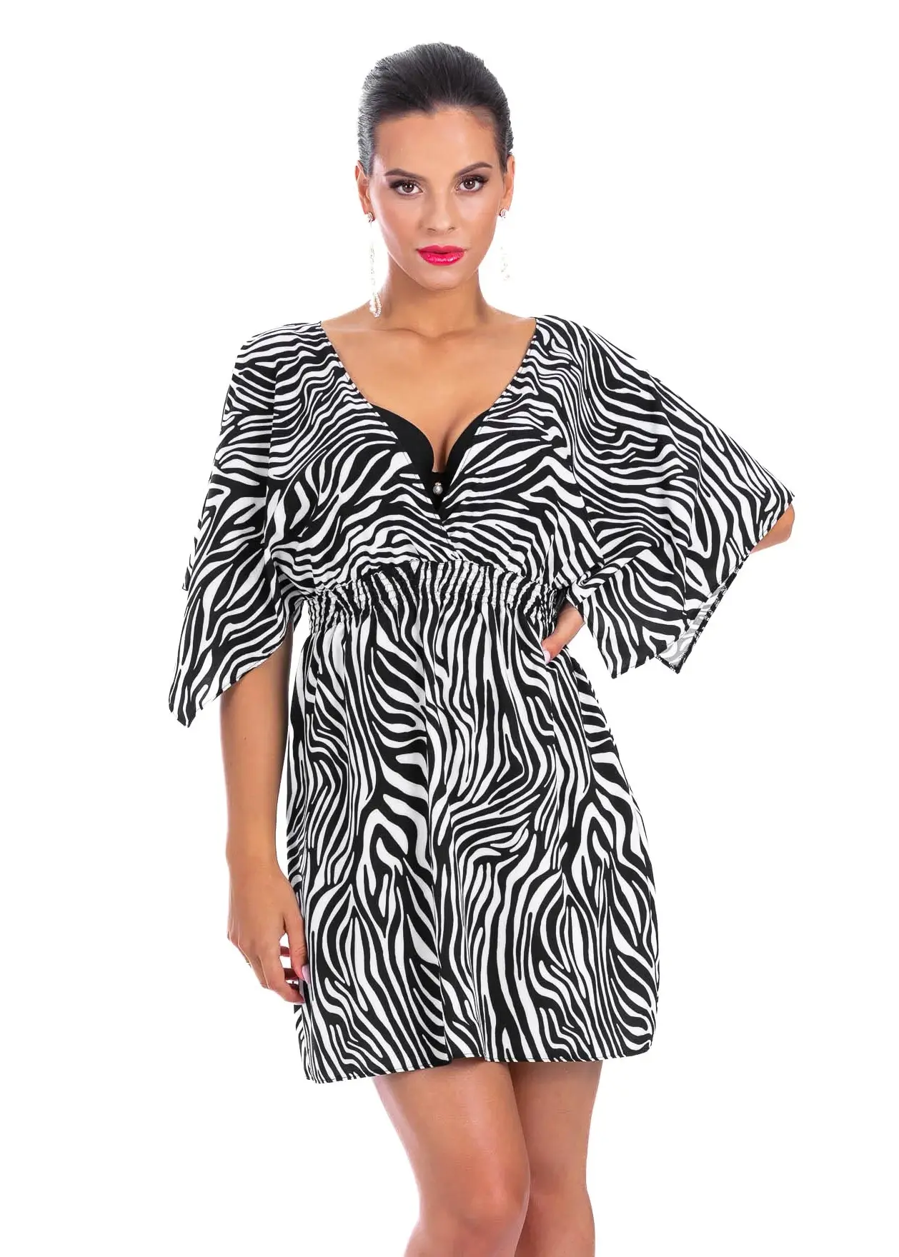 Luna / S44 – krótka sukienka plażowa w zwierzęcy wzór
