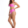 Te majtki to część większej kolekcji, gdzie każdy element został starannie przemyślany pod kątem kolorystyki i wzornictwa. Intensywny róż idealnie komponuje się z górnymi częściami z tej samej linii, pozwalając na tworzenie własnych, spersonalizowanych zestawów. Wszystkie elementy kolekcji utrzymane są w tej samej tonacji kolorystycznej, gwarantując perfekcyjne dopasowanie.