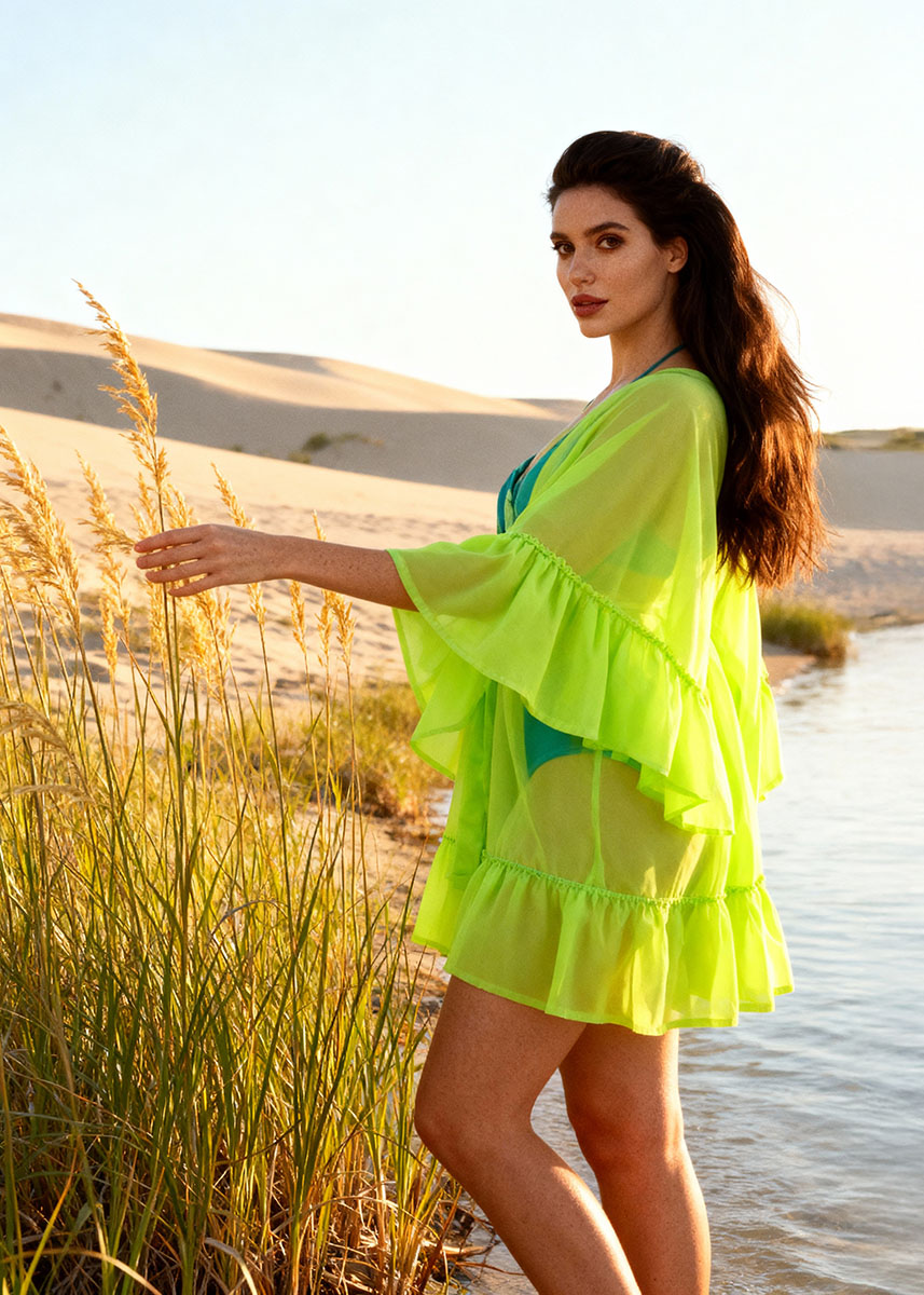 Neonowa tunika plażowa – limonkowa narzutka na kostium kąpielowy